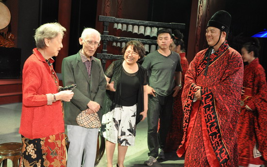 余光中与华夏古乐团的演员们亲切交谈