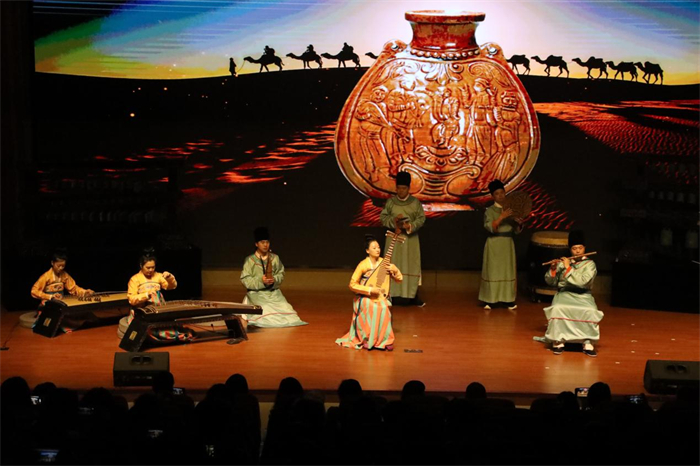 In the exhibition, musical artifacts such as Jiahu bone flutes, WangSun Gao bronze bells, Yellow-glazed flat ewer with dancing design, and pottery musical figurines from the Han dynasty were showcased. The Orchestra presented a rich and cultural music and dance performance based on these musical artifacts, gave the audience a captivating experience.