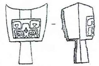 In 1968, three bronze nao bells were unearthed from Shang Tomb 8 at Subutun Village, Qingzhou City, Shandong Province. Of the same shape and carrying the same designs, they are progressively smaller in size. The hollow yong handle is connected with the cavity. At the bottom end of the handle, there is a band. The bodies are adorned with convex taotie motifs which are surrounded by convex bowstring motifs. On the front bulging part of the body there is a square tai,platform.