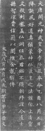 The inscription on the gold slip indicates that Wu Zetian believed in Taoism. Before ascending the throne, she believed in Buddhism, and used to make public opinions for her enthronement by counterfeiting the Mahamegha Sutra and the Annotations to Mahamegha Sutra via the Taoist incantations. After her enthronement, she gradually turned to Taoism and organized many Toulongjian ceremonies. According to the records on the Stele of Daiyue Taoist Temple dating from 691, the 2nd year of Tianshou period, “on the tenth day of the second lunar month, Ma Yuanzhen, head of Jintai Taoist Temple at Mount Songshan, cast slips to worship Deities of sacred mountains and rivers by imperial order of Great Zhou Dynasty.” The Stele of Taishang Laojun in Fengxian Taoist Temple also bears an inscription saying that Ma Yuanzhen, head of Jintai Taoist Temple, cast slips to worship Deities of sacred mountains and rivers by imperial order in the 3rd year of Tianshou period.