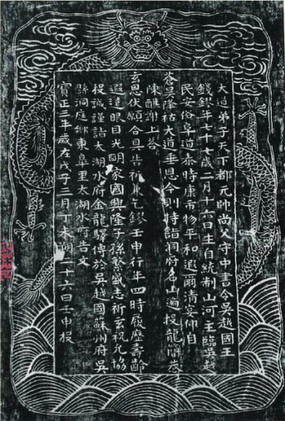 Fig. 1 Rubbings from the Stele of Shengxian Taizi and the stele top