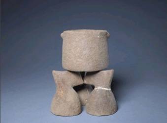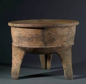 Underneath the cooking vessel, enough space is required for placing wood. While most of the discovered Chinese stoves of the early Neolithic Ages were used in most cases on flat ground without building the pot stand. Whereas the tripod cauldron rested on the three legs, and facilitated the heating. The terracotta tripod ding cauldrons, with the Terracotta Tripod Ding with Raised Nodes as the typical one, stood out among the early Neolithic cooking vessels, and became the widely spread important vessel after appearance of the Peiligang Culture.