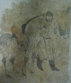 Fig. 6 Mural of a groom and horses on the east wall along the tomb passageway, the tomb of the wife surnamed Tang of Prince of Xiang who pacified the state, Tang Dynasty