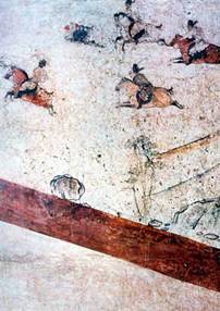 Fig. 10 Part of the mural of Playing Polo (painted on the west wall along the passageway in the tomb of Prince Zhang Huai in Qianling Mausoleum of the Tang Dynasty)