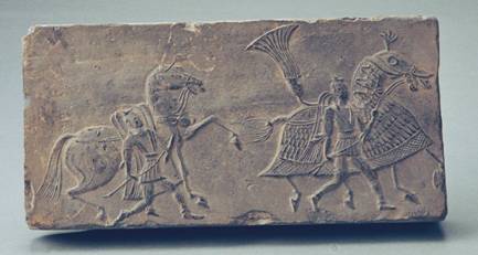 Fig. 18 Brick carved with war horses (unearthed from Xuezhuang, Dengzhou, Nanyang, Henan Province, in 1958)