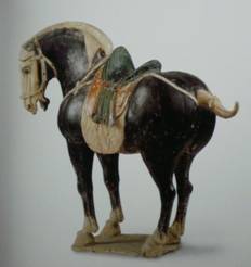 Fig. 19 Tricolored and black glazed horse (unearthed from Guanlin, Luoyang, Henan Province, in 1972)