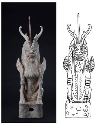 Fig.1 Lion-faced tomb-guarding beast and its line-drawing