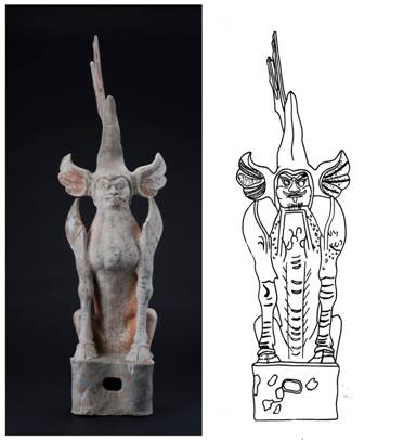 Fig.1 Human-faced tomb-guarding beast and its line-drawing