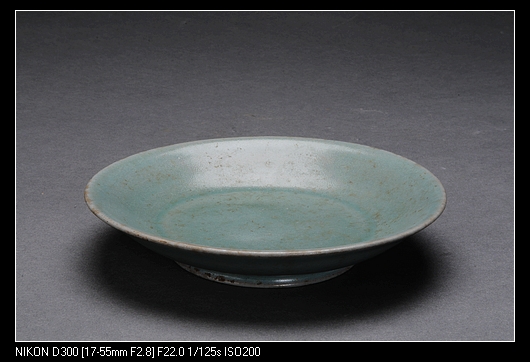 Azure-glazed plate (Fig. 9), height 3.2 cm, mouth diameter 17 cm, base diameter 9 cm.