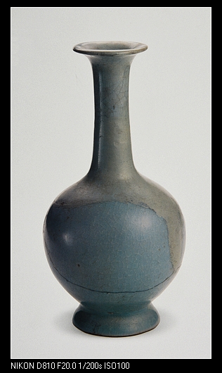 Azure-glazed vase with slim neck and small mouth (Fig. 10), height 20 cm, mouth diameter 5.4 cm, base diameter 6.4 cm.