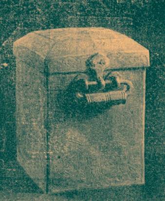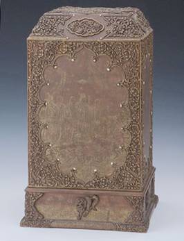 2001. The iron sarira casket was excavated from the Leifeng Pagoda crypt in Hangzhou City, Zhejiang Province (figure 16) . The casket was composed of a pedestal plate and an iron cover.