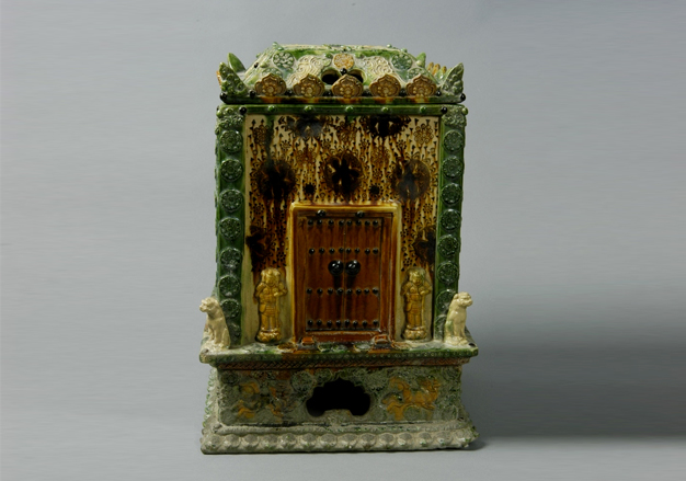 The three-color glazed sarira case housed in Henan Museum is an unique one, that it elaborately integrates Buddhist faith with traditional Chinese sculpture, architecture, ceramics, and color art, not only creating a solemn Buddhist atmosphere, displaying the dignity and splendor of the place the sarira interred, but also demonstrating the rich cultural connotation of Buddhism, as well as the glamorous art of Chinese three-color glaze.
