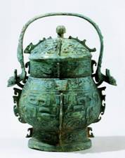 In 1990, the Ya-zhi You (Fig.7) created in the late Shang Dynasty was unearthed at M160 to the west of Guojia Village, Anyang, Henan. Overall height with lid: 35.8cm; weight: 10kg. [2]