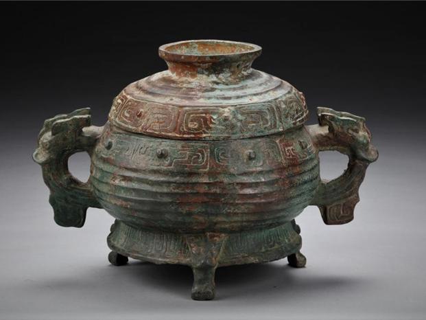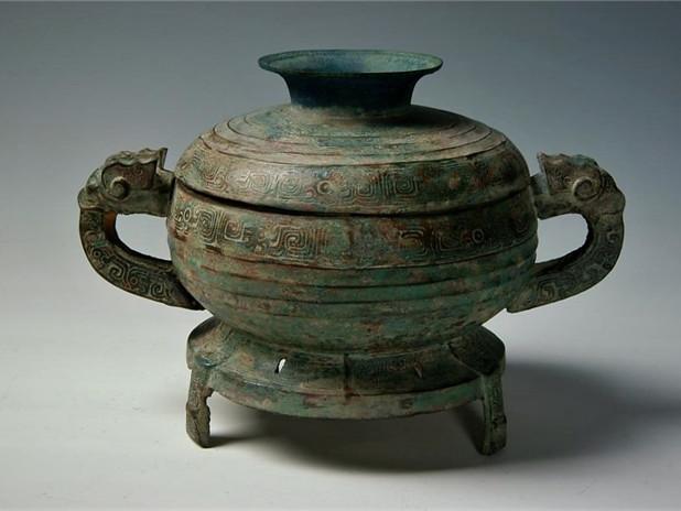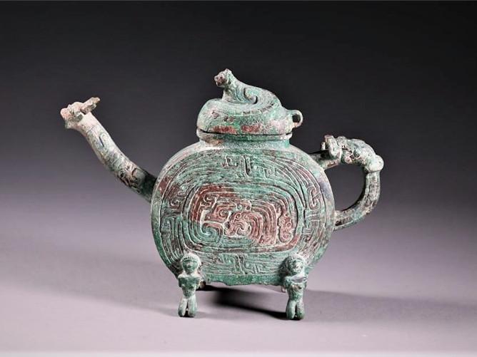 错银髹漆蟠螭纹铜方罍、错金嵌松石兽耳铜方...