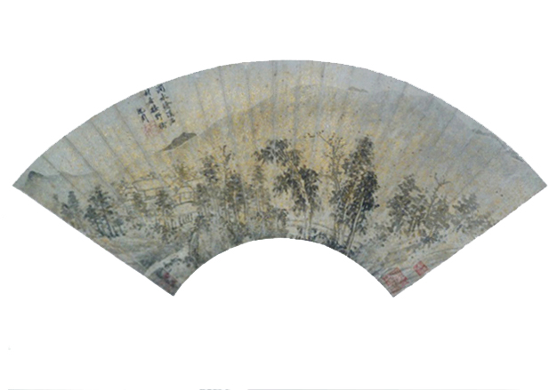 沈周《涧水村居图》,扇面,纸本,纵18.5厘米,横51厘米,河南博物院藏。