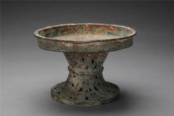 该器自铭为“甫”(铺)。器上部为折沿、直壁、浅腹、平底的圆盘,盘下有一圆柄,柄下为喇叭形高圈足。盘的外壁用一周勾连雷纹装饰,柄与圈足则用镂空工艺铸出垂鳞纹、环带状,两纹饰间还有一周突起的重环纹。器内铸铭:“虢季作甫子子孙孙用享”。