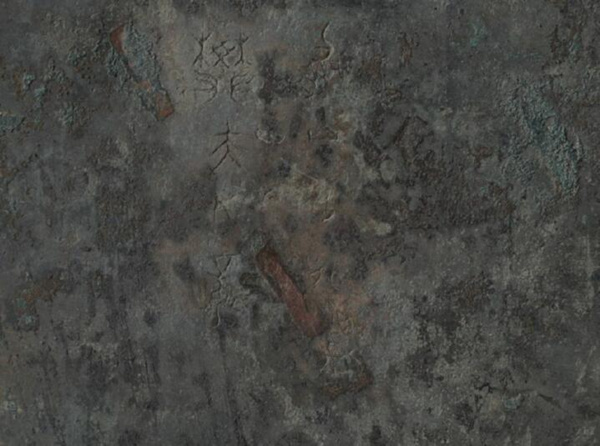 盘浅腹,两耳,平底,圆足。腹外壁装饰窃曲纹,圆足饰斜角云纹,两耳饰重环纹。盘底铸铭文:“樊夫人龙嬴自乍(作)行盘”。