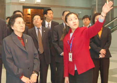 何鲁丽委员长饶有兴趣地参观了“河南古代文化之光”、“楚国青铜器”、“河南古代玉器”、“明清工艺珍品”等陈列展览,精美的文物展览、热情周到的服务和讲解员细致的讲解引起何鲁丽委员长的极大兴趣。在参观过程中,何鲁丽在博物院的精品文物面前时时驻足,细细观看,并且微笑地向讲解员提出问题。参观途中,何鲁丽一行还欣赏了华夏古乐团的精彩表演,并在演出结束后与演员们亲切留影。
