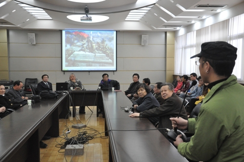 “彭彬、高泉两位老师在哪讲课?”3月16日下午3时,几位行色匆匆的学生在河南博物院门前询问工作人员。跟随着他们的脚步,记者推开了博物院第三会议室的大门,几十位观众和河南博物院的部分志愿者一同围坐在两位老师四周。《红色记忆》中国人民革命军事博物馆藏油画经典作品展画家代表与观众见面会在这里举行。