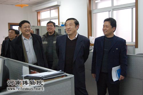 3月27日下午,河南省文化厅崔为工副厅长莅临河南博物院,在河南文化网进行专题调研。河南博物院院长张文军、副院长田凯陪同崔为工副厅长认真查看了网站的硬件设施环境,并出席了关于河南文化网发展的座谈会。